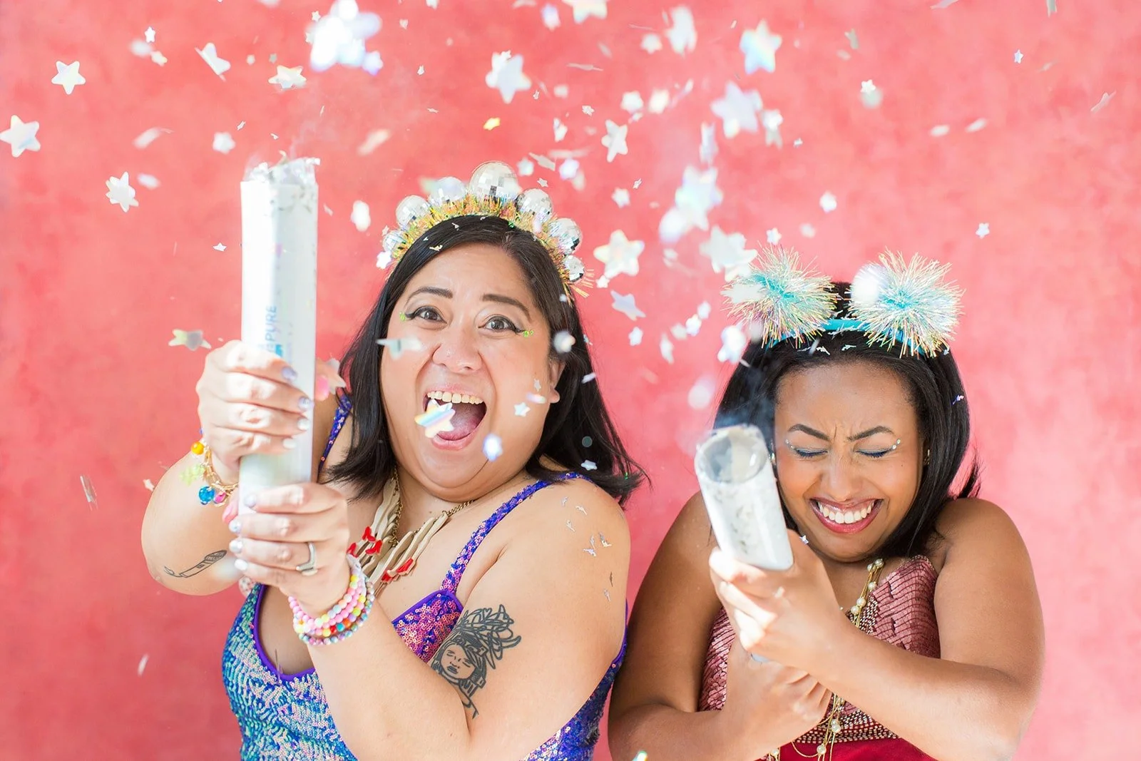 After following each other on Instagram and fangirling over DMs, Ayala-Rock and Schwartz decided to merge their all-femme groups this year, officially making Bitches in Stitches a global brand.